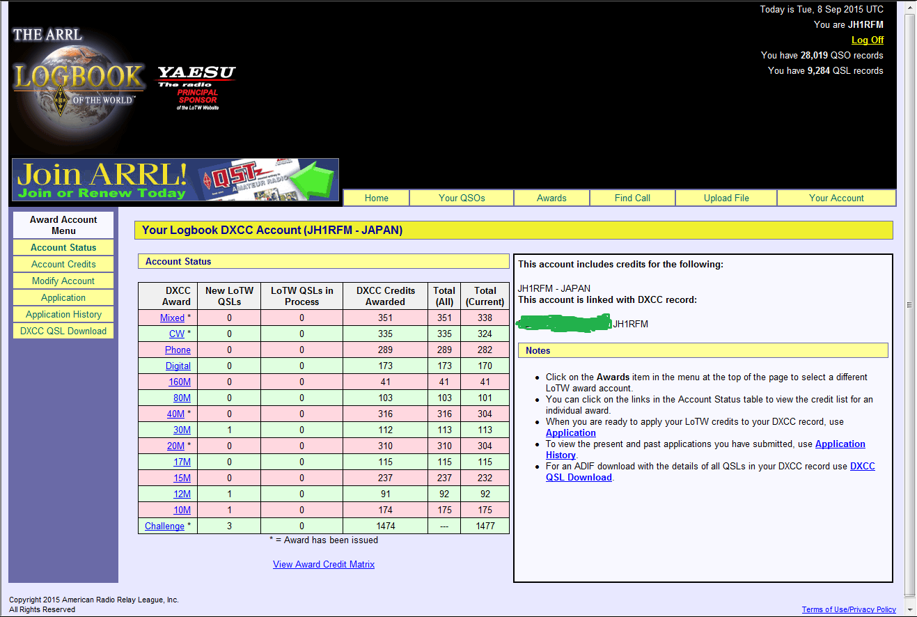 K1NがLoTWにアップロードして戴きましたので満足しております。 目標はCW DXCCを増やすだけですが紙QSLカードを申請しなくてはなりません。 何故か 面倒ですね。。。