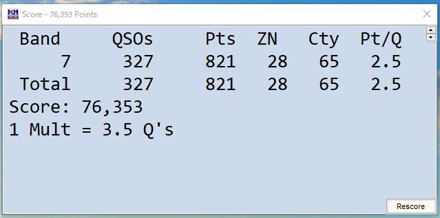 7メガ シングルバンドで参加させていただきました。夜間は寝てしまい交信数が327局でした。